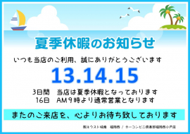 8月の 夏季休暇に付きまして ご案内させて頂きます