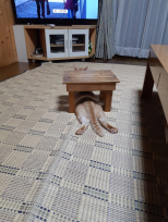 ねこちゃん見て下さい!この体勢でテレビを一緒に見てるんですよ~なんか笑えませんか(^-^;