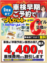 もう一つのイベントは、9月末までの 車検早期ご予約で ギフト券プレゼント🌻